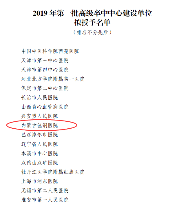 5月6日,從國家衛(wèi)生健康委腦卒中防治工程委員會獲悉,內(nèi)蒙古包鋼醫(yī)院被授予“2019年第一批高級卒中中心建設(shè)單位”。