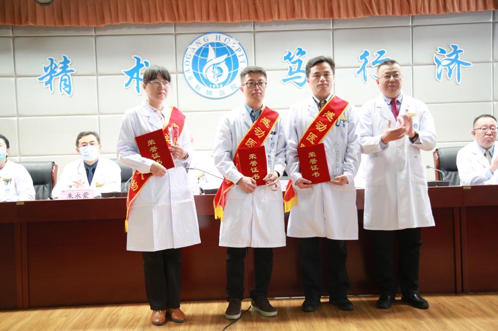 黨委副書記、紀(jì)委書記、工會(huì)主席朱永蒙作題為《堅(jiān)持全面從嚴(yán)治黨,強(qiáng)化監(jiān)督執(zhí)紀(jì)問責(zé),為推動(dòng)醫(yī)院深層次高質(zhì)量發(fā)展提供堅(jiān)強(qiáng)保障》的黨風(fēng)廉政建設(shè)工作報(bào)告。黨委委員、紀(jì)委委員、組織人事部部長牛俊瑞作《2020年黨費(fèi)收繳使用情況報(bào)告》,并安排部署慶祝建黨100周年系列活動(dòng)、創(chuàng)建“最強(qiáng)黨支部”和“四強(qiáng)黨支部”、組織生活調(diào)閱反饋制度及建立黨員“學(xué)習(xí)成長、履職踐諾”檔案等工作。黨委委員、副院長劉岱宣讀各類表彰決定。黨委書記陳寶軍、院長王凌峰分別與黨支部代表簽署了相關(guān)責(zé)任書。為了壓縮會(huì)議時(shí)間,會(huì)上不再召開專項(xiàng)表彰會(huì),各類表彰以文件的形式進(jìn)行。2021年經(jīng)過各黨支部積極推薦和醫(yī)院“感動(dòng)醫(yī)院人物”評選活動(dòng)工作領(lǐng)導(dǎo)小組討論研究,感染疾病科高桂花、泌尿外科岳長久、心胸外科韓波三名同志被授予2020年度“感動(dòng)醫(yī)院人物”,并登臺(tái)接受領(lǐng)導(dǎo)頒獎(jiǎng)。