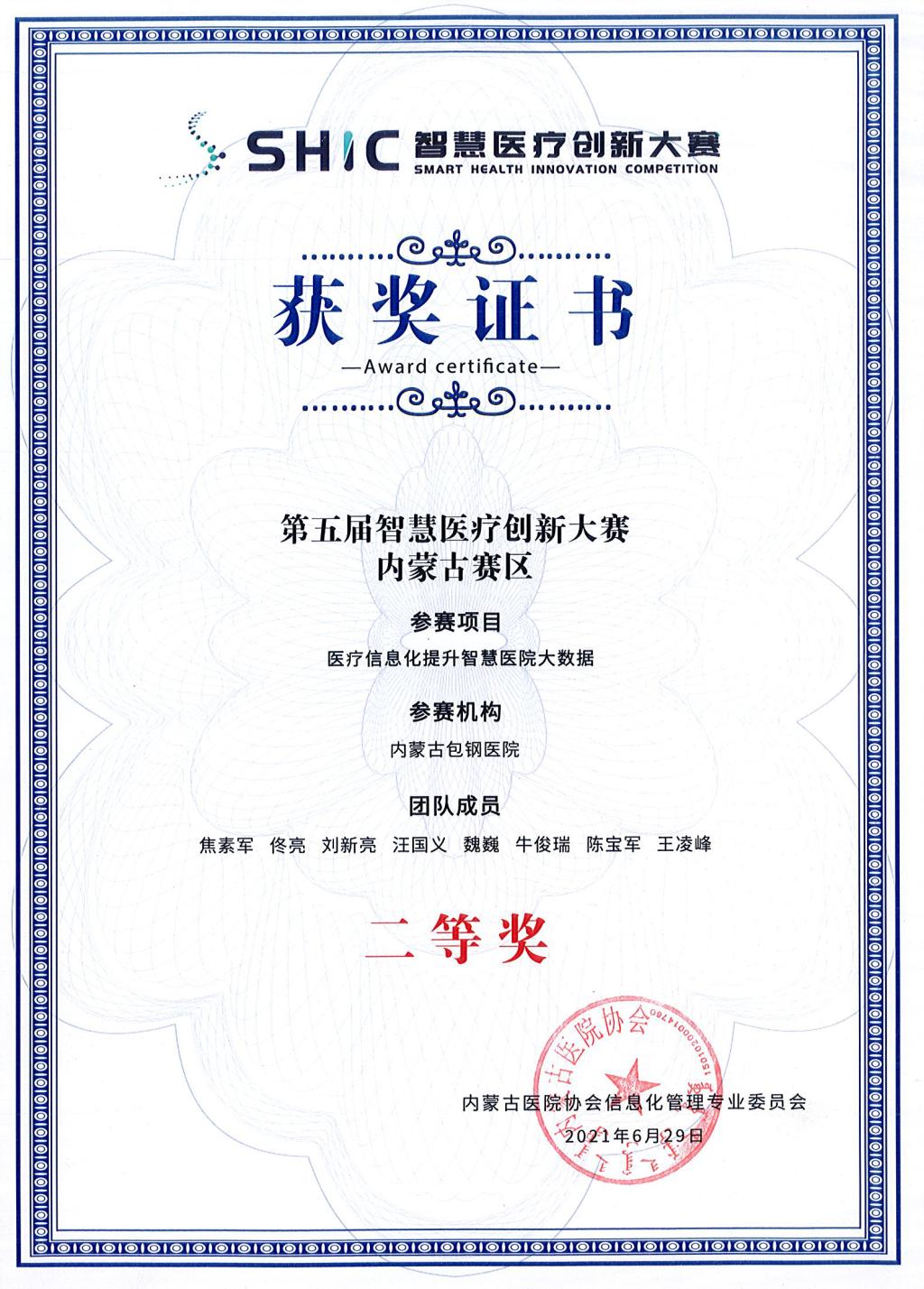 近日,第五屆智慧醫(yī)療創(chuàng)新大賽內(nèi)蒙古賽區(qū)開(kāi)賽,大賽以線(xiàn)上形式舉辦,評(píng)審組由來(lái)自自治區(qū)衛(wèi)健委信息中心、內(nèi)蒙古醫(yī)院協(xié)會(huì)等多位專(zhuān)家組成,全區(qū)多家三級(jí)醫(yī)院選送課題參賽,經(jīng)過(guò)近4個(gè)小時(shí)線(xiàn)上“云講解、云答辯”,參賽項(xiàng)目《醫(yī)療信息化提升智慧醫(yī)院大數(shù)據(jù)》從技術(shù)方案、創(chuàng)新點(diǎn)、推廣意義等方面充分展示了我院網(wǎng)絡(luò)與信息化工作在提升智慧醫(yī)院中的應(yīng)用前景與實(shí)現(xiàn)價(jià)值,得到了現(xiàn)場(chǎng)評(píng)委的好評(píng),最終榮獲內(nèi)蒙古賽區(qū)二等獎(jiǎng)。
