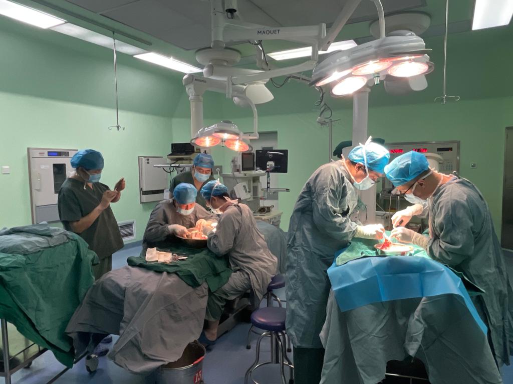 3月26日晚上到27日凌晨4點,內(nèi)蒙古包鋼醫(yī)院3間手術(shù)室一直燈火通明,無影燈下,由泌尿外科主任劉致中和普通外科主任趙金帶領(lǐng)的肝腎兩大移植團隊,麻醉手術(shù)室和重癥監(jiān)護室等多科室20多位醫(yī)務(wù)人員通宵達旦,在7個小時內(nèi)成功完成1例肝臟移植、2例腎臟移植手術(shù),延續(xù)了3位患者的生命。至此,內(nèi)蒙古包鋼醫(yī)院器官移植中心專家團隊在10天之內(nèi)完成了3例肝移植、6例腎移植手術(shù),刷新了醫(yī)院在10日的短時間里完成多例器官移植紀錄。