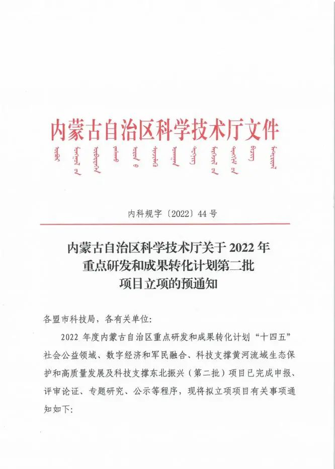 其中,我院《呼包鄂地區(qū)蒿屬植物花粉變應(yīng)反應(yīng)差異及致敏相關(guān)抗原和脫敏機制的研究》、《基于微生物組學(xué)和代謝組學(xué)的肥胖加重自身免疫性肝炎機制研究》、《膚癢清凝膠制備及基于“網(wǎng)絡(luò)預(yù)測”對兒童濕疹免疫調(diào)節(jié)的潛在作用機制研究》獲得2022年度內(nèi)蒙古自治區(qū)重點研發(fā)和成果轉(zhuǎn)化計劃第二批立項項目。《瑞馬唑侖基于NF-κB對腎移植患者圍術(shù)期免疫功能的影響》、《環(huán)磷酸腺苷對大面積燒傷患者肝保護(hù)作用的研究》等20項科研項目獲得內(nèi)蒙古自治區(qū)衛(wèi)生健康委2022年醫(yī)療衛(wèi)生科技計劃項目立項。《尿源性干細(xì)胞來源外泌體在豬尿道脫細(xì)胞基質(zhì)復(fù)合體構(gòu)建中的作用》、《脛骨橫向骨搬移促進(jìn)EPC動員歸巢的研究》獲得2022年自治區(qū)自然科學(xué)基金立項。