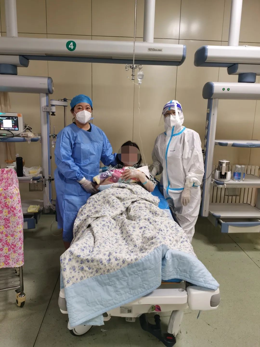 8月8日上午,我院接到疾控中心電話告知有一名孕婦是居家隔離人員,現(xiàn)仍處于隔離期,凌晨出現(xiàn)宮縮隨時(shí)可能臨盆。我院醫(yī)務(wù)部接到通知后立刻啟動(dòng)應(yīng)急預(yù)案,婦產(chǎn)科成立專班,超聲科心電圖室等相關(guān)科室會(huì)同婦產(chǎn)科專班人員前移至急診科隔離病房,在保證孕婦及胎兒安全的前提下嚴(yán)格執(zhí)行隔離措施。鄭女士到達(dá)醫(yī)院后,經(jīng)初步檢查和問詢確定鄭女士生命體征平穩(wěn),胎兒情況良好,在場的醫(yī)護(hù)人員都松了一口氣。8月8日晚6點(diǎn),伴隨著新生兒的啼哭聲,孕婦在內(nèi)蒙古包鋼醫(yī)院醫(yī)護(hù)人員的精心照料下順利分娩,母女平安。這也是今年疫情以來首例在我院急診科隔離病房分娩的新生兒。