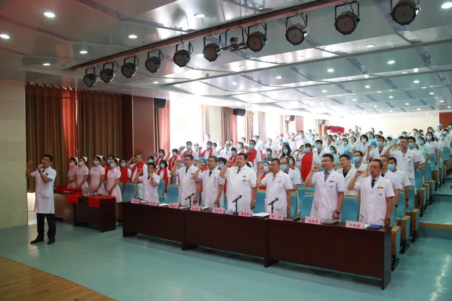“我莊嚴(yán)宣誓,自覺維護醫(yī)學(xué)的尊嚴(yán)和神圣,敬佑生命,救死扶傷……”會議現(xiàn)場,在醫(yī)務(wù)部副部長陳磊的領(lǐng)誓下,全體醫(yī)師用錚錚誓言表達(dá)他們投身醫(yī)療事業(yè)、服務(wù)病人、守護人民生命健康的決心。