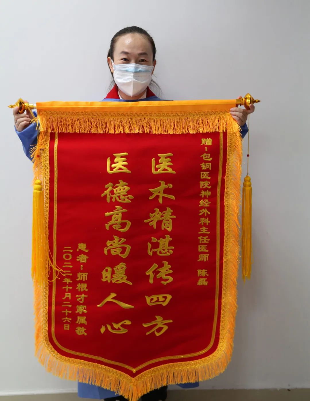 11月11日,內(nèi)蒙古包鋼醫(yī)院神經(jīng)外科收到一位患者送來的感謝信和一面錦旗,字里行間透露著對神經(jīng)外科醫(yī)護(hù)人員的感激之情,表達(dá)著患者和家屬對醫(yī)院醫(yī)護(hù)人員的信賴與支持。