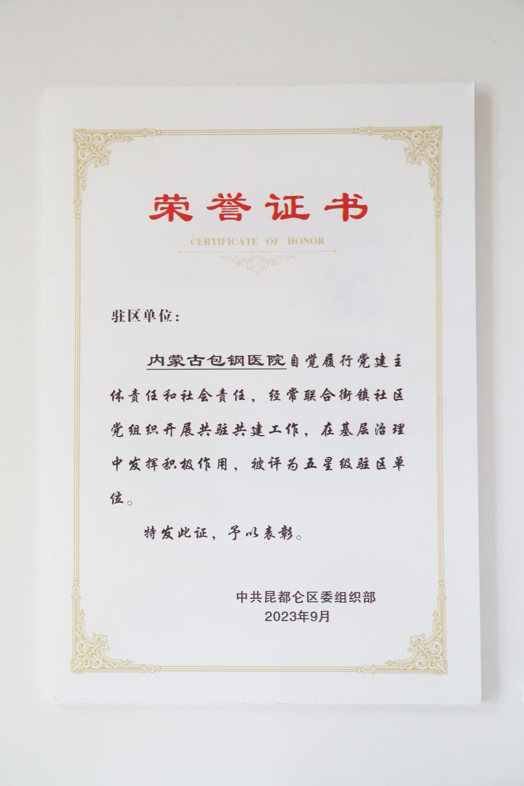 近日,2023年昆都侖區(qū)地區(qū)黨建聯(lián)席會(huì)暨全域黨建聯(lián)盟年會(huì)現(xiàn)場(chǎng)公布了黨建引領(lǐng)基層治理“四評(píng)”工作五星級(jí)駐區(qū)單位評(píng)定結(jié)果,內(nèi)蒙古包鋼醫(yī)院依托在基層治理中發(fā)揮的積極作用,獲評(píng)“昆都侖區(qū)五星級(jí)駐區(qū)單位”榮譽(yù)稱號(hào)。