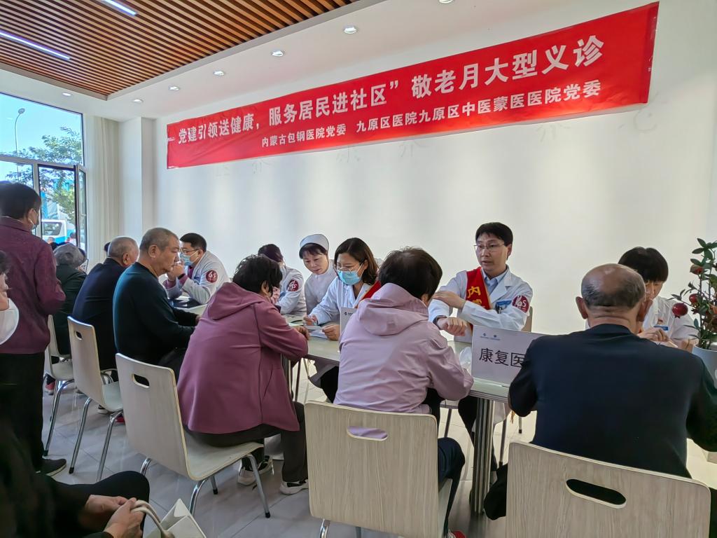 10月19日下午,內(nèi)蒙古包鋼醫(yī)院義診專(zhuān)家團(tuán)隊(duì)走進(jìn)九原區(qū)白音席勒街道開(kāi)元社區(qū)、龍宇社區(qū)開(kāi)展“黨建引領(lǐng)送健康 服務(wù)居民進(jìn)社區(qū)”敬老月大型義診活動(dòng),把健康送到居民的家門(mén)口。