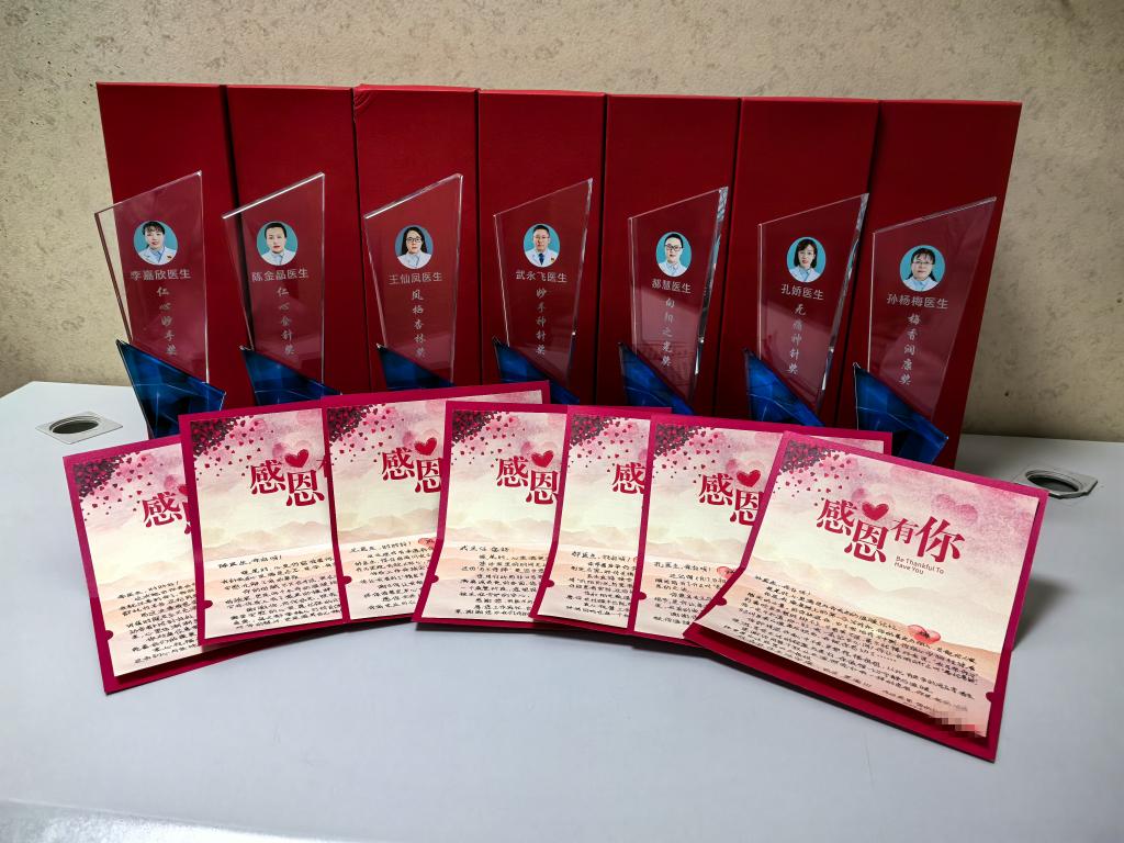如今,張女士的身體功能得到了顯著改善,正穩(wěn)步走向康復(fù)。為表達內(nèi)心深深的謝意,她近日特意為康復(fù)醫(yī)學科的7位醫(yī)生送來了情真意切的手寫感謝賀卡和沉甸甸的獎杯。這份特殊的禮物,不僅是對武永飛主任及其團隊精湛醫(yī)術(shù)和優(yōu)質(zhì)服務(wù)的最高肯定,更是和諧醫(yī)患關(guān)系的美好見證。