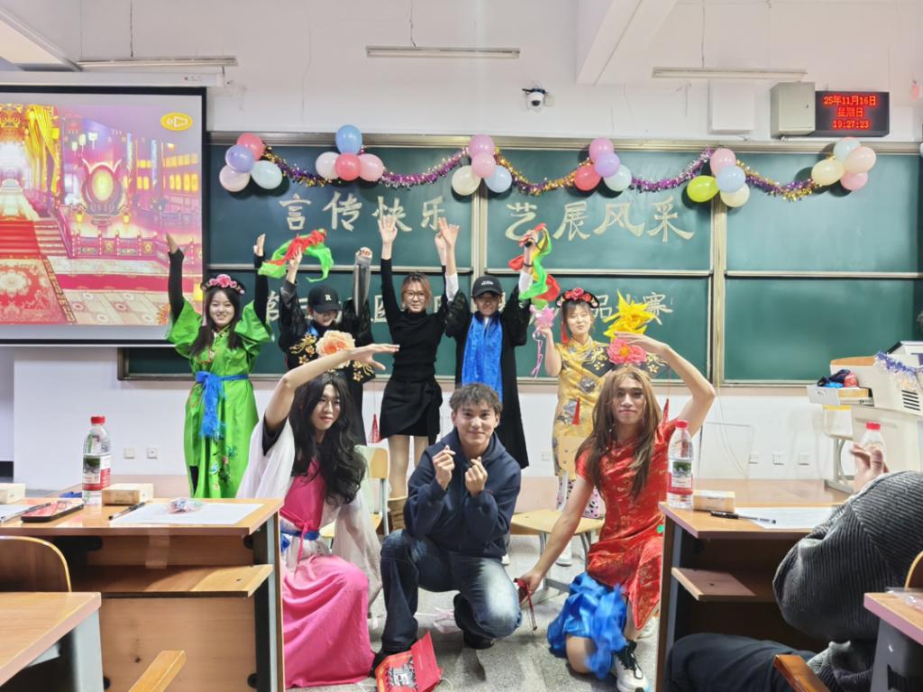 為讓比賽圓滿呈現(xiàn),學(xué)生會(huì)各部門凝心聚力、周密部署,每一個(gè)細(xì)節(jié)都凝聚著工作人員的心血。各參賽團(tuán)隊(duì)都全力以赴,用熱愛詮釋初心——賽前反復(fù)排練打磨,道具細(xì)節(jié)力求精致,臺(tái)詞節(jié)奏字斟句酌,肢體動(dòng)作與表情神態(tài)反復(fù)雕琢;從劇本創(chuàng)作到舞臺(tái)呈現(xiàn),同學(xué)們將生活中的點(diǎn)滴觀察、對(duì)社會(huì)現(xiàn)象的思考融入作品,既有詼諧幽默的橋段,也有溫情治愈的瞬間,更有直擊人心的深刻立意。