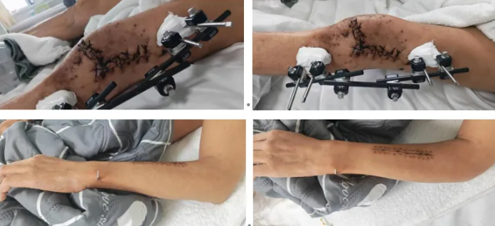 經(jīng)過首輪急診救治,患者開放性創(chuàng)面暫時封閉,生命體征趨于平穩(wěn)。骨科隨后有序推進(jìn)分期手術(shù):