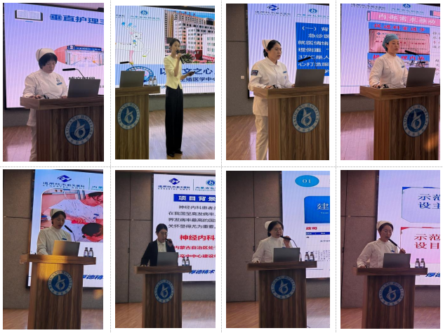 在精彩的匯報(bào)展示環(huán)節(jié),來(lái)自16個(gè)申報(bào)科室的選手依次登臺(tái),在8分鐘的限時(shí)內(nèi)各展風(fēng)采。匯報(bào)者緊緊圍繞“37℃護(hù)理服務(wù)”核心理念,緊密結(jié)合各自專科特點(diǎn),從品牌定位、特色內(nèi)涵、創(chuàng)新舉措、實(shí)施路徑及階段成果等多維度,生動(dòng)呈現(xiàn)了豐富多樣的實(shí)踐探索。