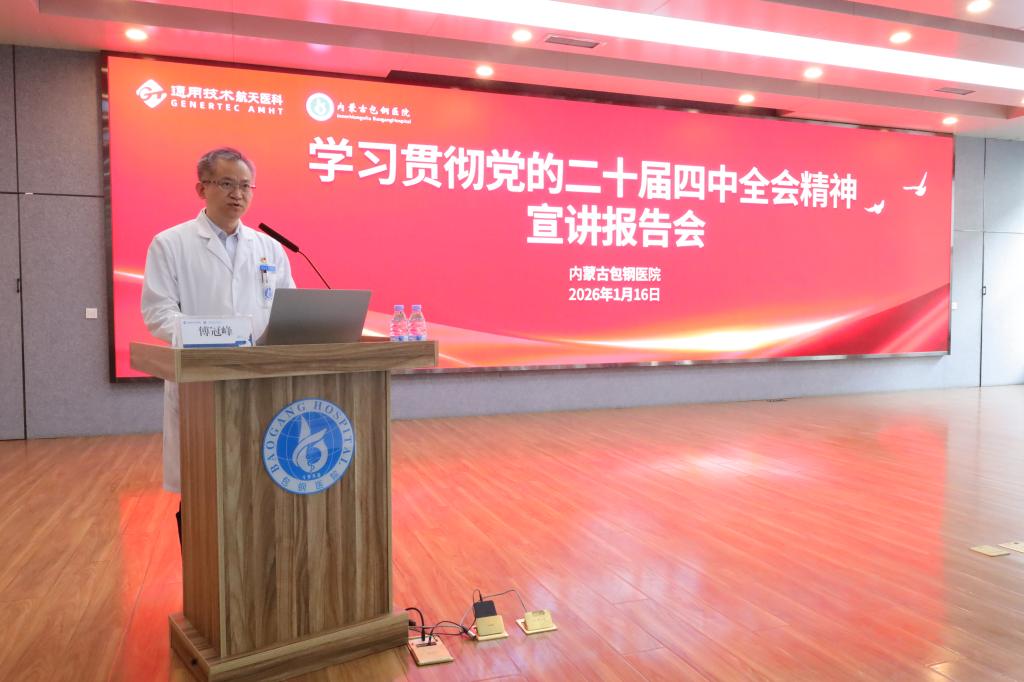 為深入學習宣傳貫徹黨的二十屆四中全會精神,根據(jù)航天醫(yī)科黨委統(tǒng)一部署,1月16日下午,航天醫(yī)科黨委委員、副總經(jīng)理楊姝雅在內(nèi)蒙古包鋼醫(yī)院開展黨的二十屆四中全會精神專題宣講。醫(yī)院領(lǐng)導班子成員、黨支部書記、科主任、護士長及黨員代表、職工代表、青年代表參加會議。