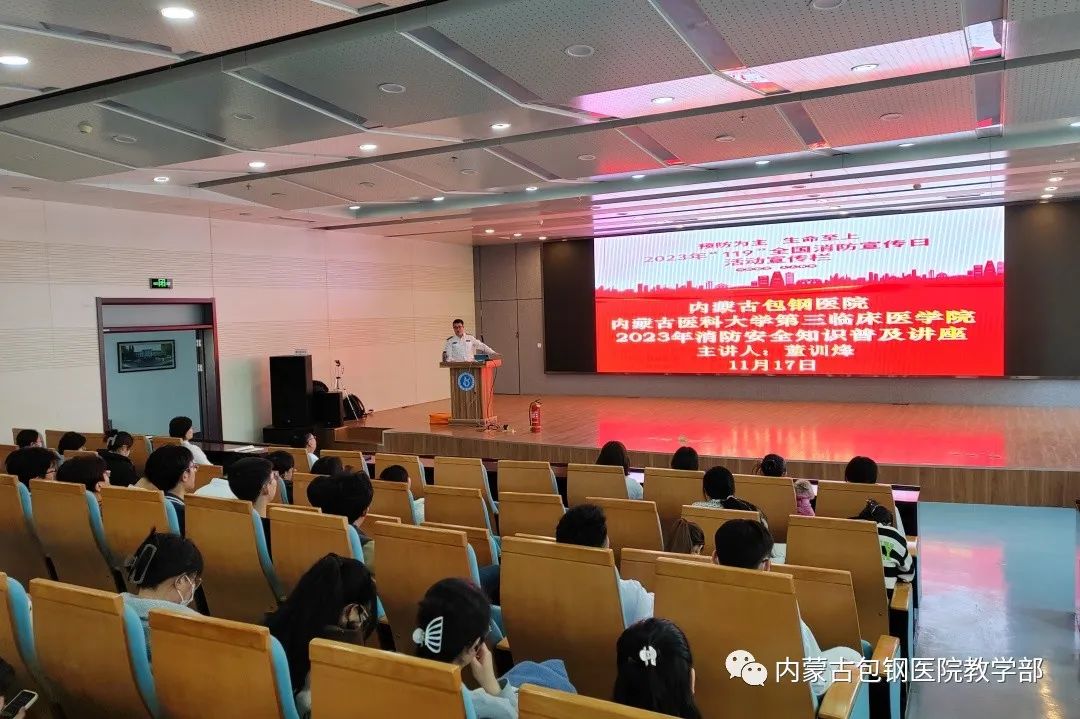 為了進(jìn)一步強(qiáng)化消防安全管理,普及消防安全知識(shí),全面貫徹落實(shí)全國第32個(gè)消防宣傳月“預(yù)防為主,生命至上”的主題,內(nèi)蒙古包鋼醫(yī)院教學(xué)部于2023年11月17日下午在門診九樓多功能會(huì)議室,組織召開“關(guān)注消防安全,共筑平安校園”消防安全培訓(xùn)會(huì)。培訓(xùn)會(huì)由教學(xué)部副部長、學(xué)生工作科劉彤主任主持,委托醫(yī)院保衛(wèi)部聘請包頭市安全健康教育中心董訓(xùn)烽教官開展消防安全培訓(xùn)。我院本科生、研究生、住培生和教職工參加。本次培訓(xùn)旨在筑建廣大師生消防安全“防火墻”。