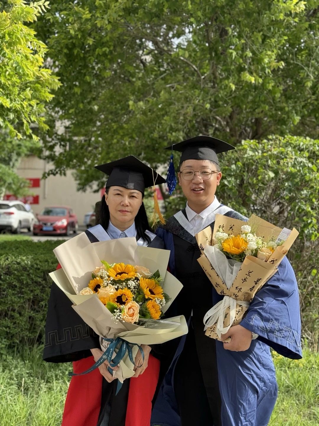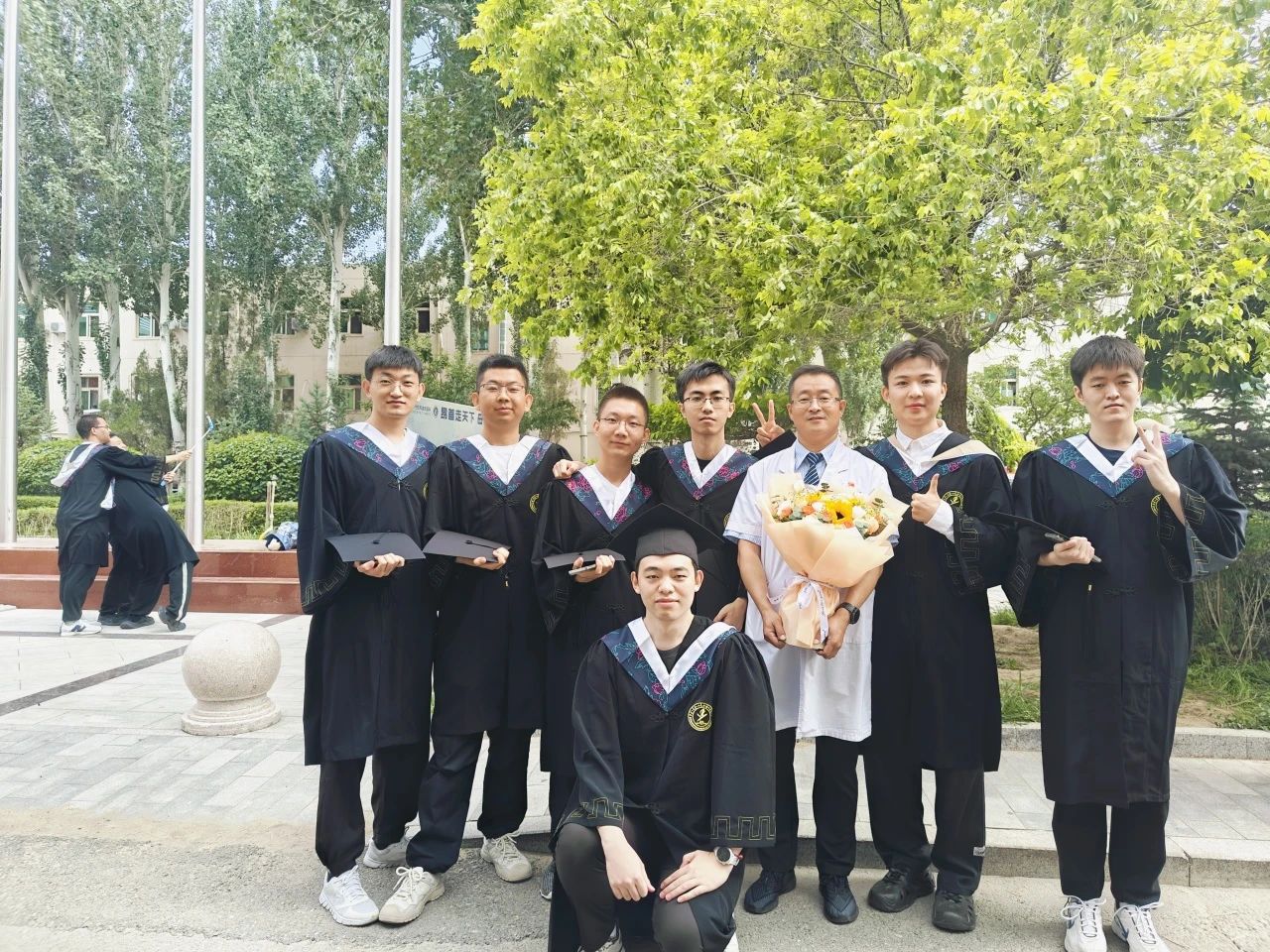 本科畢業(yè)生代表與輔導(dǎo)員張宏明老師合影