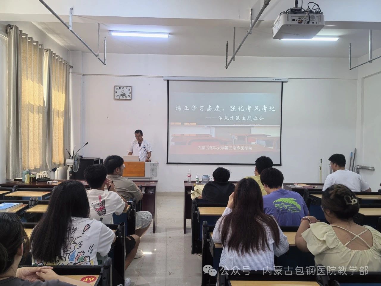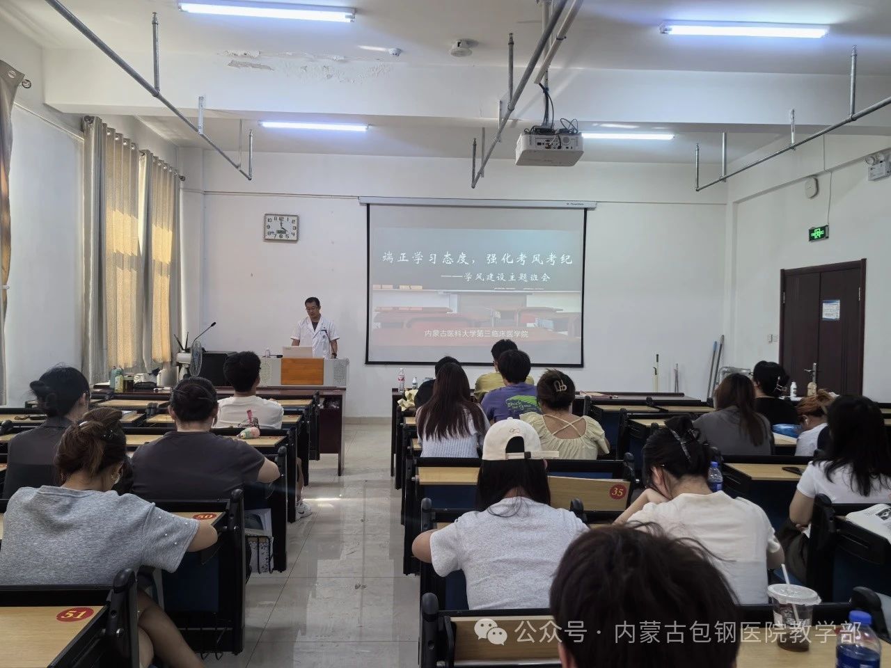 6月25日在內(nèi)蒙古包鋼醫(yī)院教學(xué)樓開展主題班會,輔導(dǎo)員張宏明老師、2020級以及2021級全體本科生參加。張老師鼓勵同學(xué)們根據(jù)自身學(xué)習(xí)能力進行系統(tǒng)的復(fù)習(xí)總結(jié),希望大家適時調(diào)整心態(tài)、從容應(yīng)考,嚴(yán)格遵守考場紀(jì)律,發(fā)揚誠信精神,以實際行動維護考試的公平公正。期末考試不僅是對同學(xué)們學(xué)習(xí)成果的檢驗,更是一場道德與誠信的考驗。