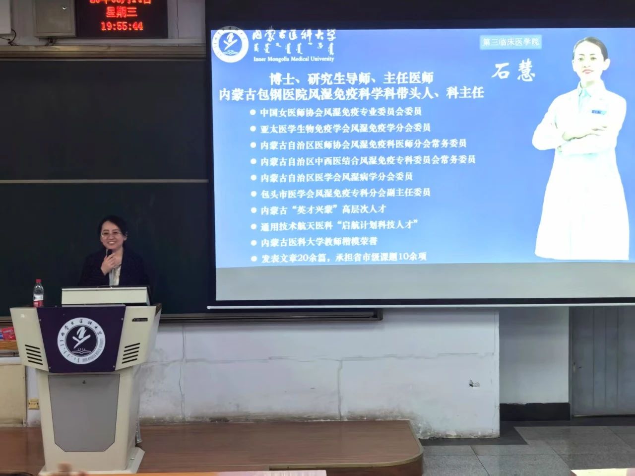 以此次師生見(jiàn)面會(huì)為契機(jī),學(xué)院特色專題講座“醫(yī)路之上,金牌教師伴你行”邀請(qǐng)到了內(nèi)蒙古包鋼醫(yī)院風(fēng)濕免疫科主任石慧老師。