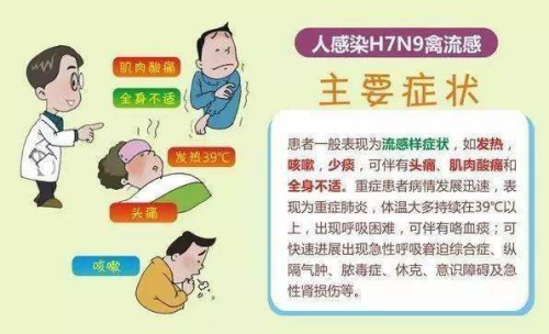 人感染H7N9禽流感是由甲型H7N9禽流感病毒感染引起的急性呼吸道傳染病,為冬春季常見呼吸道傳染病。一般表現(xiàn)為發(fā)熱、咳嗽、少痰,可伴有頭痛、肌肉酸痛和全身不適。重癥患者病情發(fā)展迅速,表現(xiàn)為重癥肺炎,體溫大多持續(xù)在39℃以上,出現(xiàn)呼吸困難,可伴有咳血痰,常并發(fā)急性呼吸窘迫綜合征、膿毒性休克、多器官功能障礙綜合征,甚至導(dǎo)致死亡。居民如感覺有上述不適,要及時(shí)就醫(yī),并第一時(shí)間告知禽類接觸史,在醫(yī)生指導(dǎo)下正規(guī)治療和用藥。