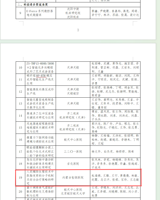 成果:《人類(lèi)輔助生殖技術(shù)中胚胎發(fā)育的分子機(jī)制及綜合治療策略的研究》;完成科室:內(nèi)蒙古包鋼醫(yī)院生殖醫(yī)學(xué)科;主要完成人:杜海燕、王璐、王寧、黃薇薇、林敏、紀(jì)霞、烏日汗、張榮、石珍、王志敏。