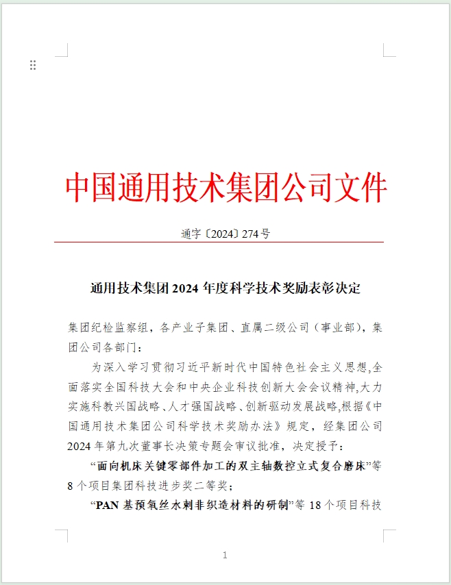 熱烈祝賀我院一項(xiàng)科技成果獲得通用技術(shù)集團(tuán)科技進(jìn)步優(yōu)秀獎(jiǎng)
