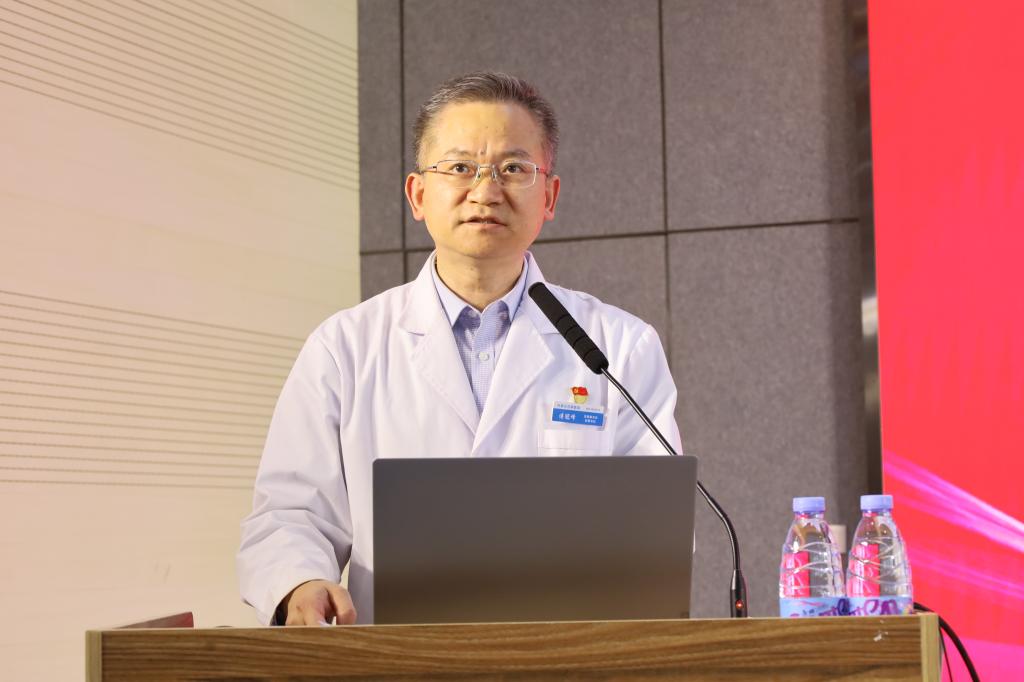 院黨委副書記、紀委書記傅冠峰宣讀五四評選表彰決定和醫(yī)院第六屆科技新星表彰文件。